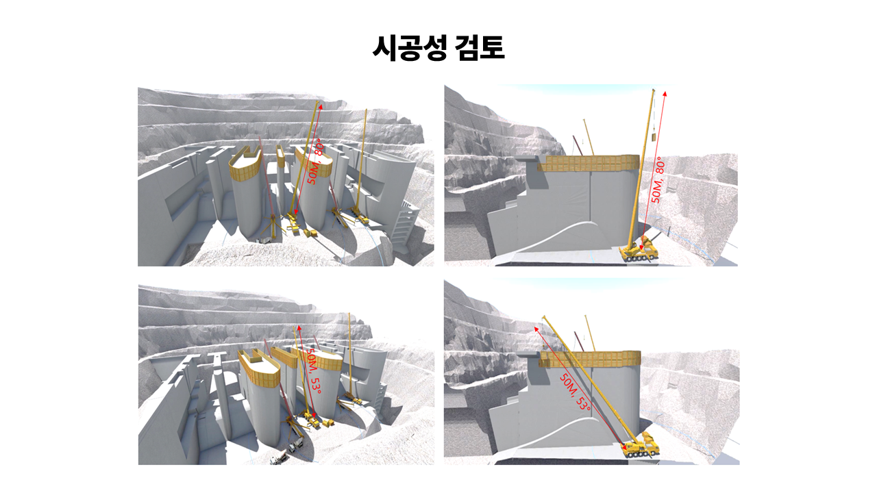 - 시공성 검토 : 4D 시뮬레이션, 장비 시뮬레이션 – 크레인 운용