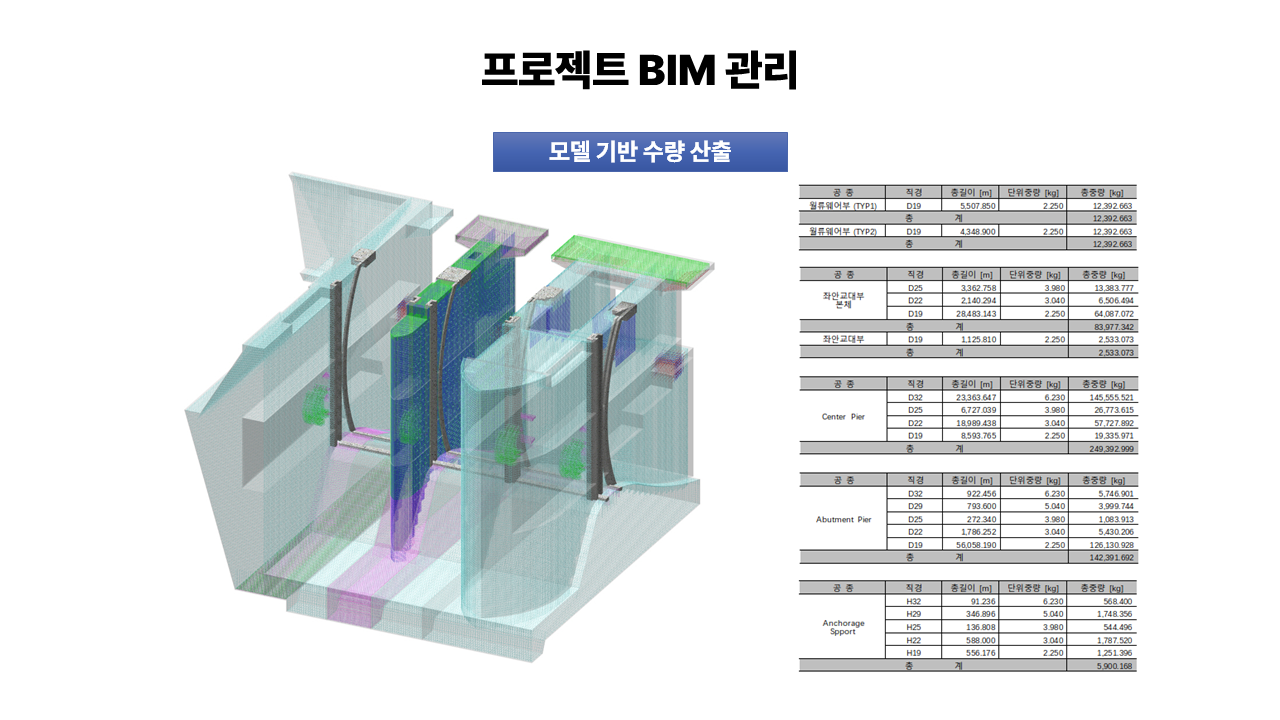 - 3D 모델링 & 수량 : 보조 여수로, 여수로 교량, 철근 모델링