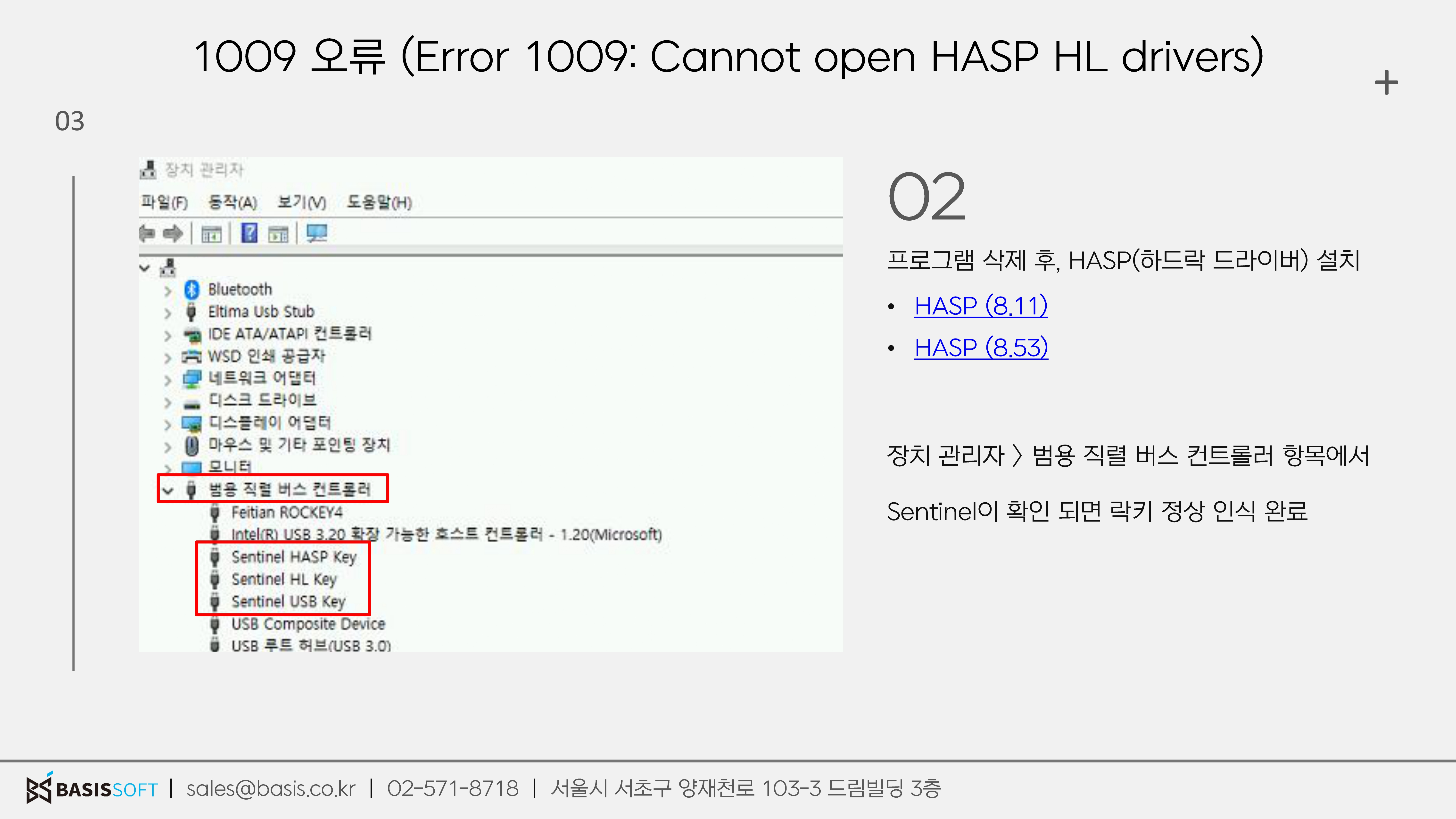 (해당 PC가 락키를 인식하면 Sentinel 명칭이 붙은 항목이 나타납니다.)