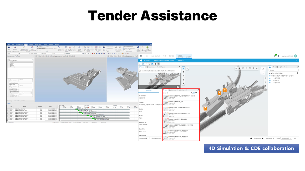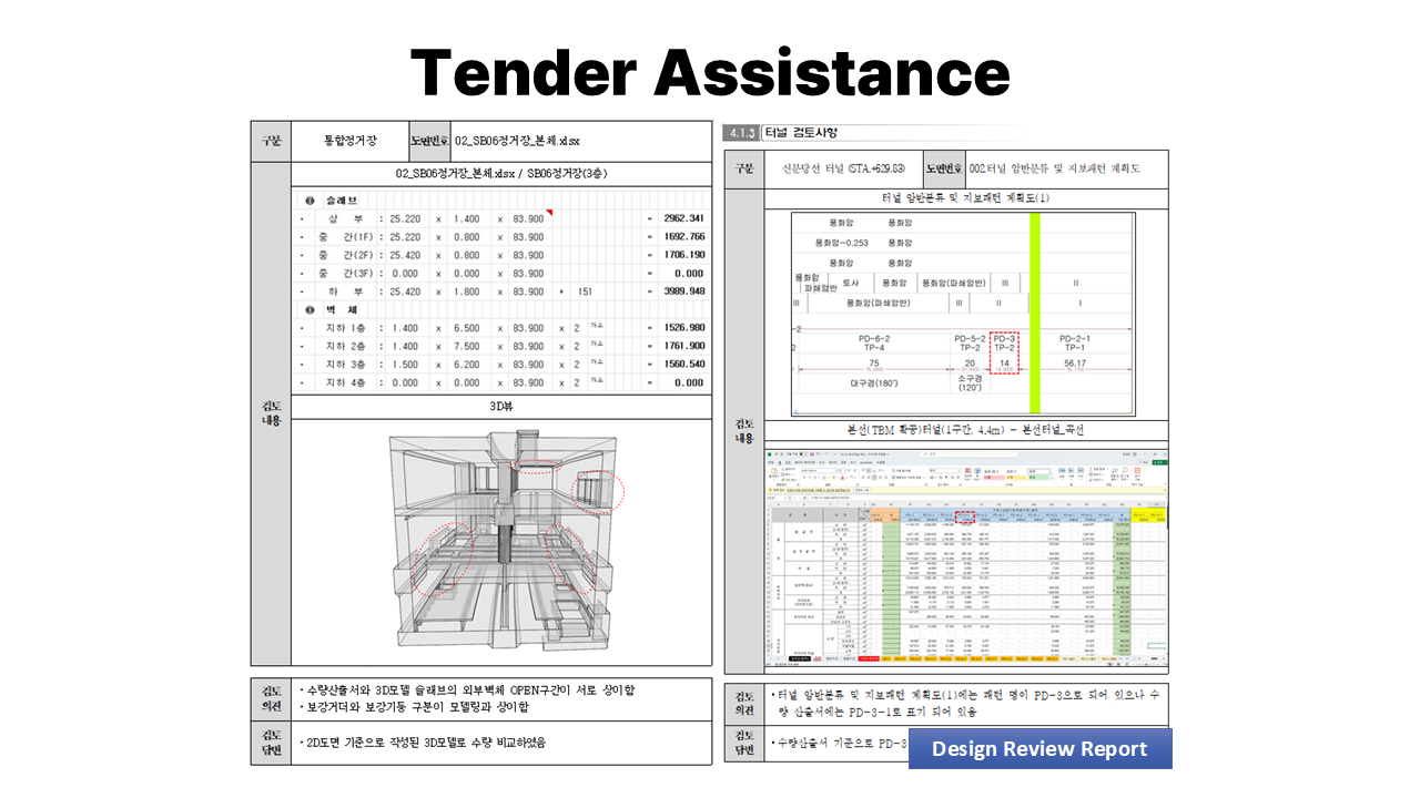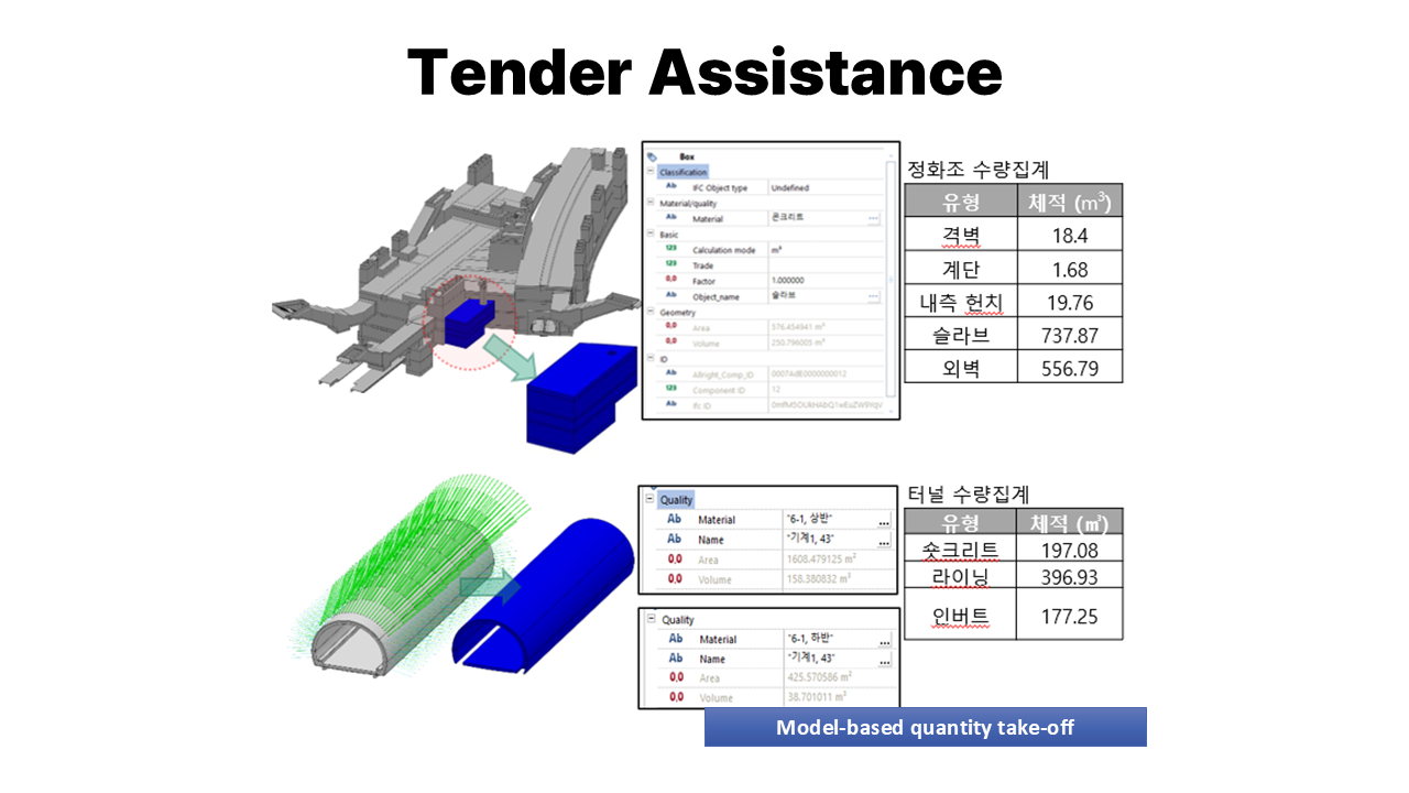 • Tender Assistance : Model-based design drawings, Model-based quantity take-off.